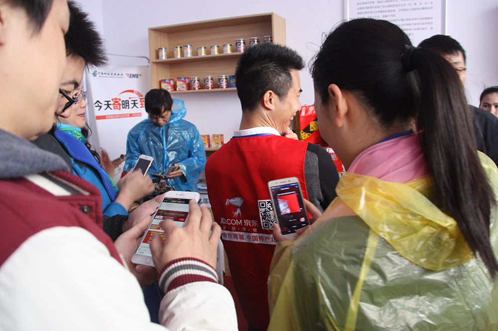 電商谷展區(qū)熱鬧非凡(與會(huì)嘉賓在電商谷體驗(yàn)京東北海館購物)